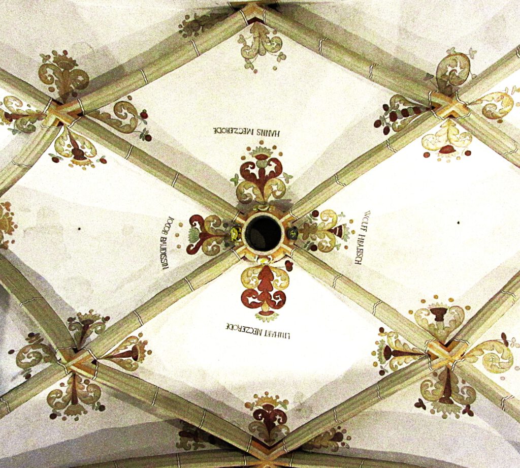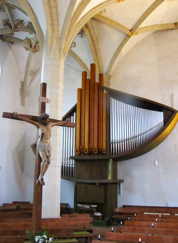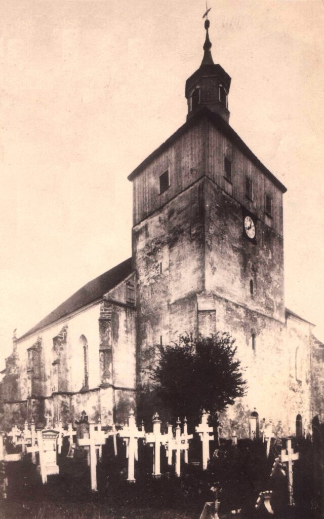 Am Platz sehen wir auf der Südseite die ehemalige alte Kirchschule, westwärts das jetzige Kantorat, die 1842 gebaute frühere Kirchschule und rechter Hand am Ende des Weges zum Friedhof das Gehöft des früheren Diakonatslehen. Dieses war bis in die 1930er Jahre der Sitz des zweiten Gödaer Pfarrers (Diakon). Nicht zu übersehen, der Anblick der markanten Kirche mit den weithin sichtbaren und zwei Turmspitzen. Damit sind wir bereits and der Station 2 Ehemalige alte Kirchschule
