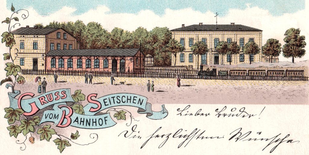 Sie stehen hier in Kleinseitschen mit Blick auf das Seitschener Eisenbahnviadukt,